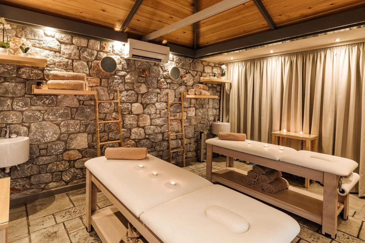 výhledem na moře nebo hory, disponuje venkovním bazénem, wellness a